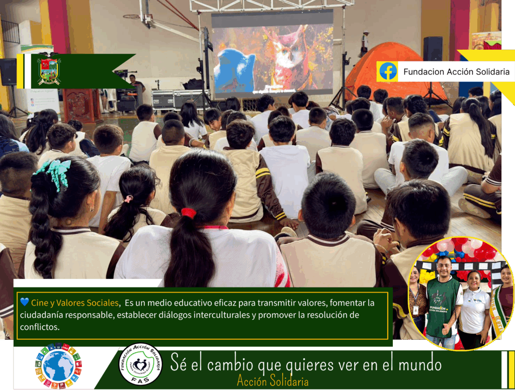 Niños y jóvenes de instituciones educativas de nuestro cantón, vivieron una mañana llena de entretenimiento, reflexión y aprendizaje; gracias al proyecto «Cine y Valores Sociales», que tuvo como objetivo principal utilizar el cine como herramienta educativa y de solidaridad.